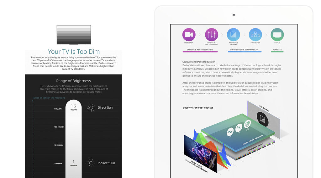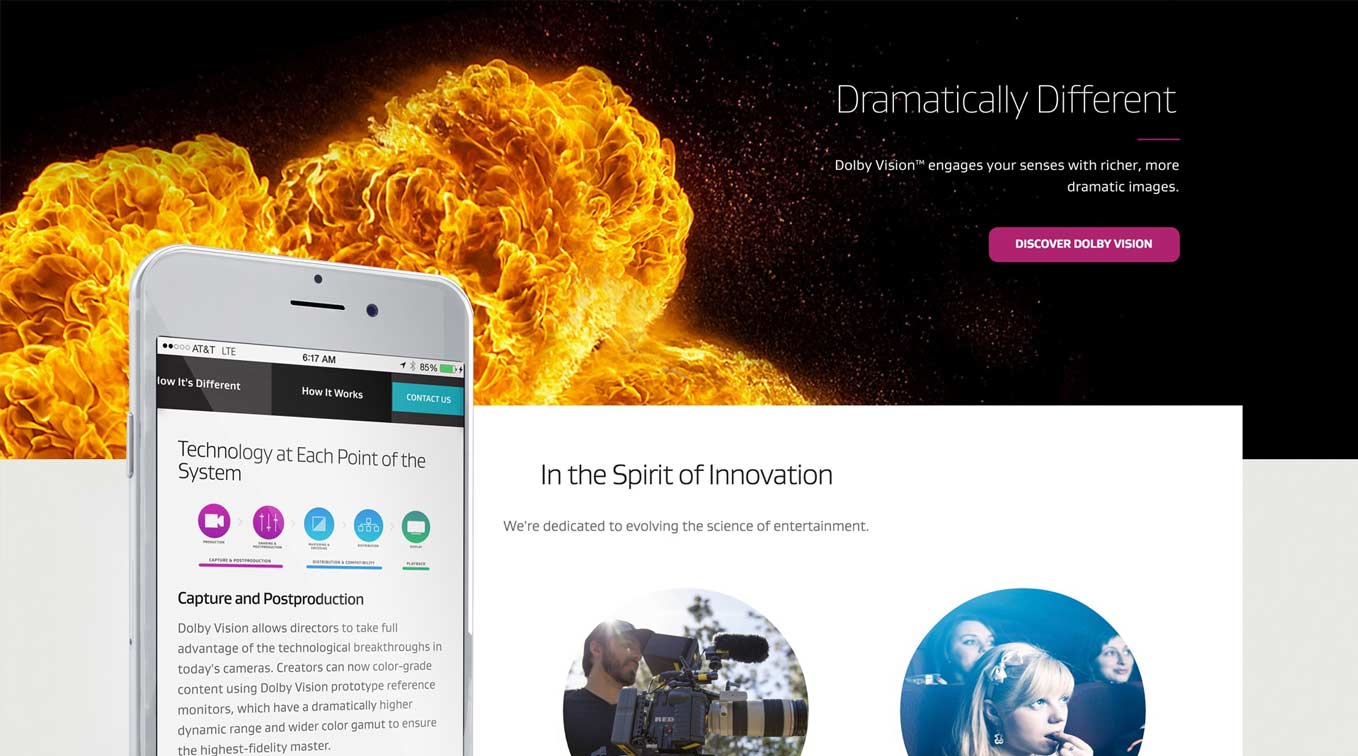 Pushing the boundaries of storytelling, breaking the rules of filmmaking.  Dolby Vision is a breathtaking television technology resulting in higher contrast, 100x more brightness, and a wider color gamut than we’d ever seen before in a television screen.  The result is a more immersive, more real viewing experience that literally evokes a physiological response from the audience.